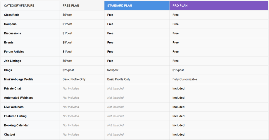 - Unlimited Posting Features: Standard and Pro Plans eliminate pay-per-post fees for most categories.