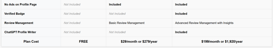 - Verified Status: Add trust to your brand with a Verified Badge, exclusive to the Pro Plan.